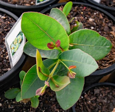 Once established, the Bell-Fruited Mallee is highly drought-tolerant and doesn’t need much watering, making it perfect for our long, hot summers. It’s also more tolerant of salty bore water than many other plants, so it’s well-suited to gardens that rely on bore irrigation. This makes it a practical, low-maintenance choice for large properties or for gardeners who want something reliable that doesn’t require constant attention.