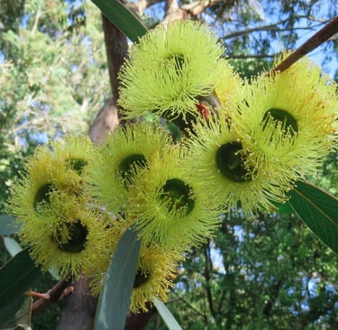 The Bell-Fruited Mallee grows up to 5 metres tall, making it a versatile option for both smaller gardens and larger properties. It produces stunning large, bell-shaped yellow flowers in late winter and spring, which not only look beautiful but also attract pollinators like birds and bees—making it a wonderful way to support local wildlife.