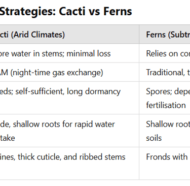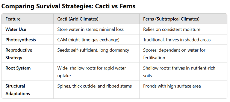 Cacti and ferns are living examples of how plants adapt to their environment. Their evolution offers valuable lessons for designing gardens that align with local climates: