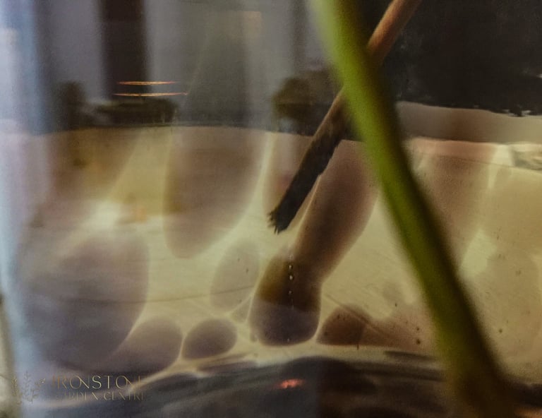 When the branches were placed in water, the cut ends began to absorb moisture through their vascular tissue, specifically the xylem. This uptake of water rehydrates cells along the length of the branch, enabling processes like leaf sprouting and even potential root formation. If you look closely at the submerged cut ends, you might notice small, fuzzy lines appearing. These lines are likely early signs of root primordia, where specialised cells are beginning to divide and prepare for the possibility of root development.