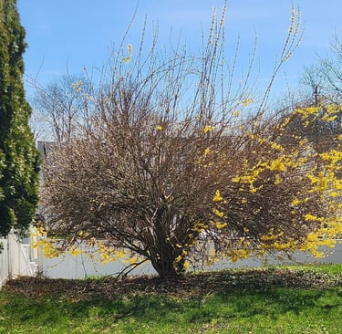Lynwood Gold Forsythia is a true chameleon in the garden. Here's how it looks through the seasons: