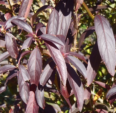 As the weather cools, the green leaves turn a lovely purplish hue, adding a new colour dimension to your garden.