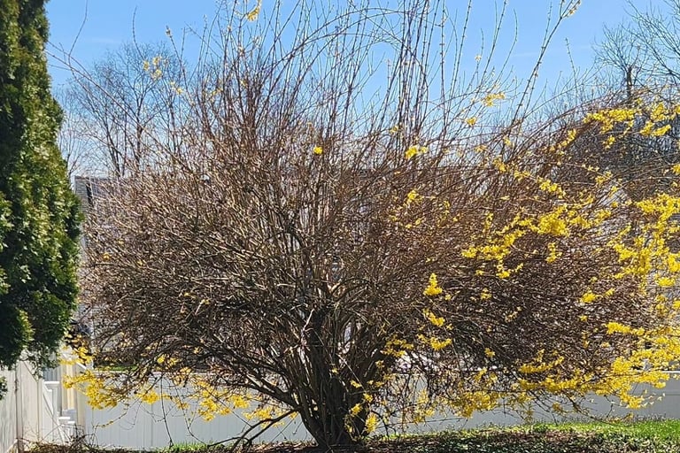 The bare branches of Lynwood Gold Forsythia have a charming, sculptural quality that adds interest to the winter landscape.