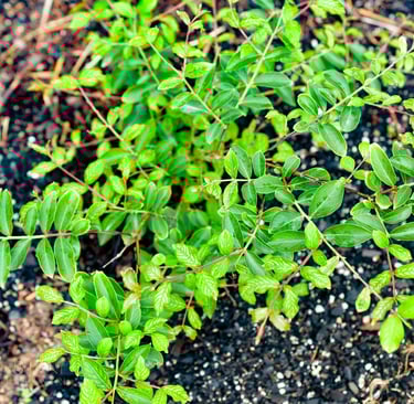 A recently planted Crepe Myrtle has begun to show signs of interveinal chlorosis on its new growth. This condition is characterised by pale or white areas between the leaf veins, while the veins themselves remain green. This pattern is an indicator of nutrient stress, particularly involving immobile nutrients such as iron or manganese.
