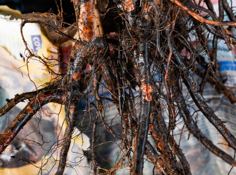 2. Hydrating: The first step is to hydrate the roots. We soak them in water for 24-48 hours to rehydrate and prepare them for planting.